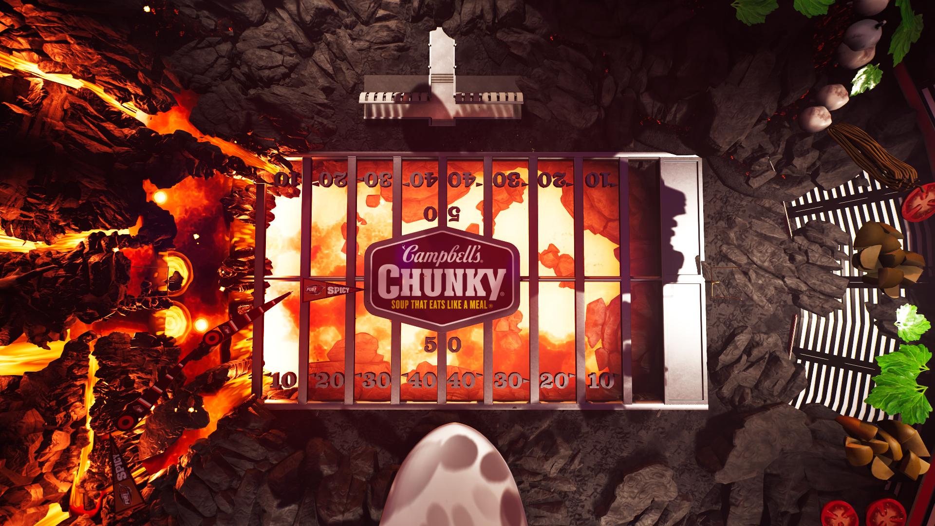 Towards the end of the game, players will be exposed to an enlarged can of Chunky's Spicy Chicken Noodle soup.